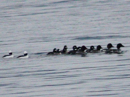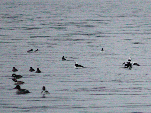 Four female Common Goldeneye, with Bufflehead. Photo by Lillian Reis |