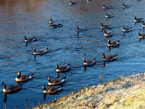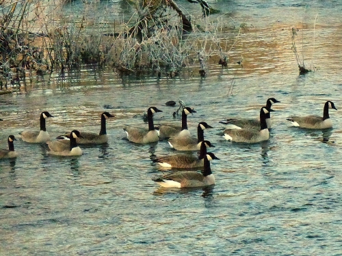 Canada Geese in slough below weir. Photo by Hugh Jennings