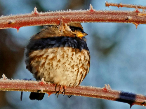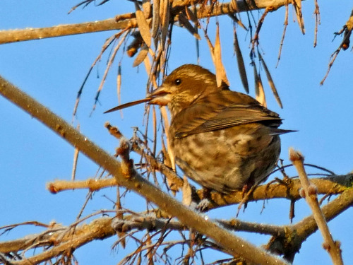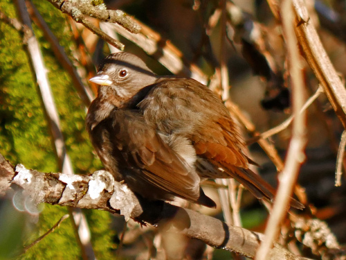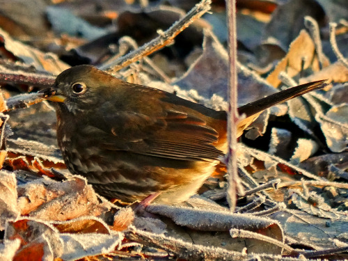 Fox Sparrow showing a lot of red in the early morning light. Photo by Ollie Oliver