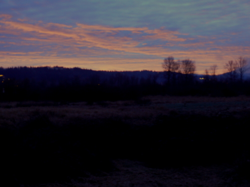 | It was frigid but gorgeous today – 23 degrees but crystal clear skies. Pre-dawn was glorious, with frost, a glow from the east, a SHORT-EARED OWL cruising the meadows, Venus, Jupiter next to the half-moon, and the sounds of geese on the lake.