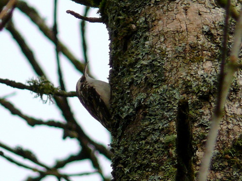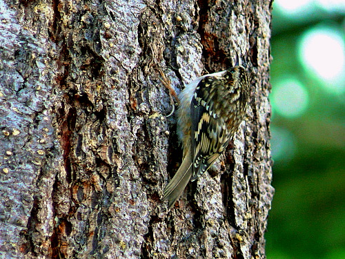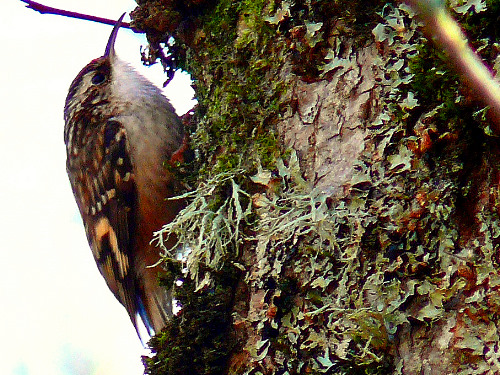 ![]() This creeper was apparently building nest in the crack in the bark, 2008-04-03. It was seen bringing moss into the site, and twigs can be seen. Checking back the next couple of weeks, it appears the nest is not being used. |